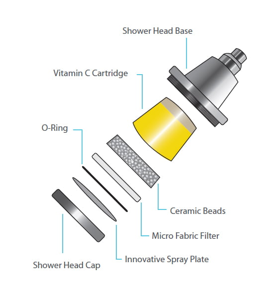 | 3. Aroma (Zitrone) | Ausgestattet mit einem Zitrus-Aroma Vitamin C Gel Filter für ein extra entspanntes Duscherlebnis. Die Gel Kartusche reicht für ca. 3 Monate bzw. 9´000 Liter Wasser. |