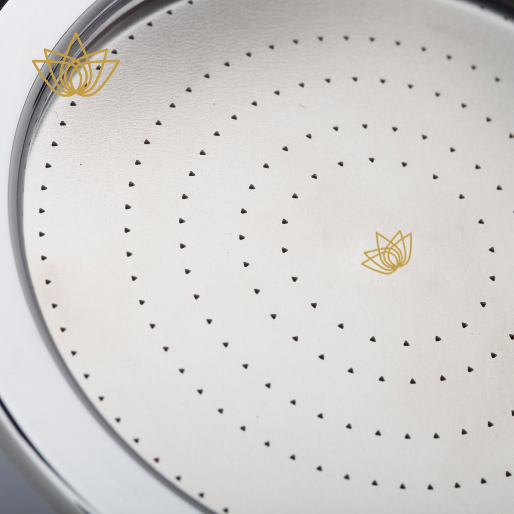 | Ionisieren | Die patentierte Duschsiebplatte kreiert 421.000 ccm3 negative Ionen. Dies ist 4 mal mehr als der gemessene Wert um einen natürlichen Wasserfall. Dies trägt zur Pflege der Haut, zur Steigerung der Energie und zur Förderung des allgemeinen Wohlbefindens bei. |